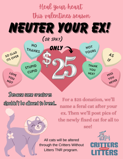 This pet rescue that, for a $25 donation will let you name a feral cat after your ex before it gets neutered.